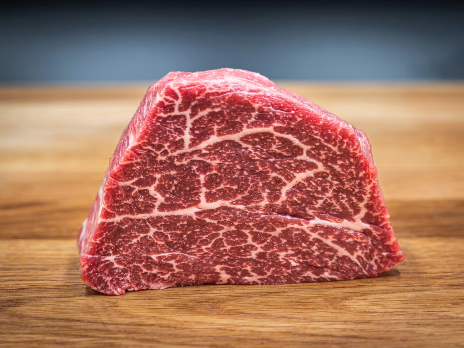- Viande de race Wagyu, reconnue pour son persillage exceptionnel.
